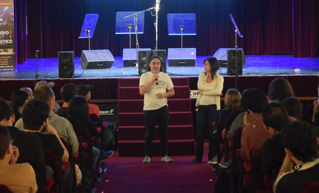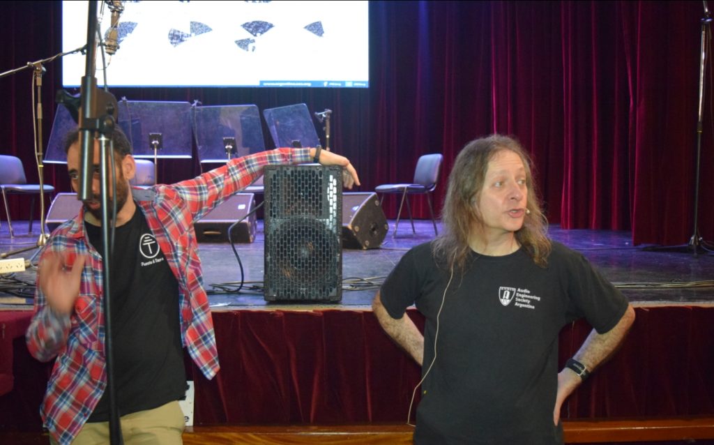 Promediando la jornada, se hizo presente Gonzalo Manco quien nos detalló y nos hizo escuchar diferentes grabaciones de bandoneón con distintas tomas estéreo, para así poder apreciar las distintas sonoridades dependiendo de la toma que se utilice. Con una platea expectante, Gonzalo hizo hincapié en analizar las distintas situaciones y poder resolver con buen criterio la grabación de un instrumento muy particular como lo es el bandoneón; y que históricamente se viene grabando de forma muy poco aprovechada.