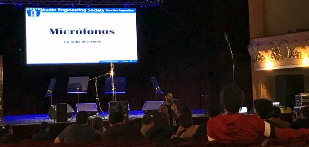 Como teníamos que grabar a un cuarteto de cuerdas para luego reproducir y escuchar lo que sucedía en el teatro con dicha grabación, era necesario introducirnos en el mundo de los micrófonos y sus características. Para ello estuvieron presentes Jota Picone que nos describió brevemente la historia del micrófono y su desarrollo, e Indio Gauvron aportando algunas experiencias sobre distancia crítica en recintos. Entre patrones polares, respuesta temporal de micrófonos capacitivos y dinámicos, se hizo un breve repaso de la historia de las características generales y particulares de diferentes tomas con micrófonos en estéreo y algunos casos de estudio sobre el uso de múltiples tomas de este tipo con propósitos específicos. La clara experiencia de Jota Picone e Indio Gauvron en el campo de las grabaciones en recintos y en general, lograron hacer que sus disertaciones sean claras y colmadas de ejemplos prácticos.