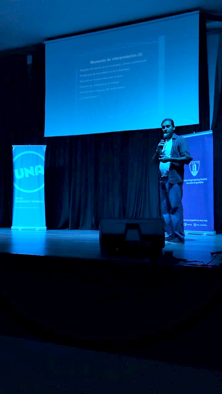 Este viernes 17 de septiembre de 2025 se celebró en el auditorio Julio García Cánepa del Departamento de Artes Musicales y Sonoras dependiente de la Universidad Nacional de las Artes, en la Av. Córdoba 2445 de la ciudad de Buenos Aires, la 1ª Jornada de creación musical con nuevas tecnologías AES-DAMUS | UNA organizada en perfecta armonía entre la sección profesional de AES Argentina y la carrera de Composición con Medios Mixtos del DAMUS | UNA.