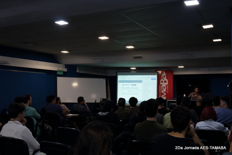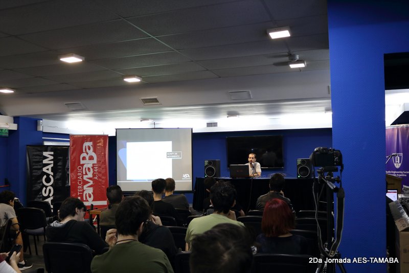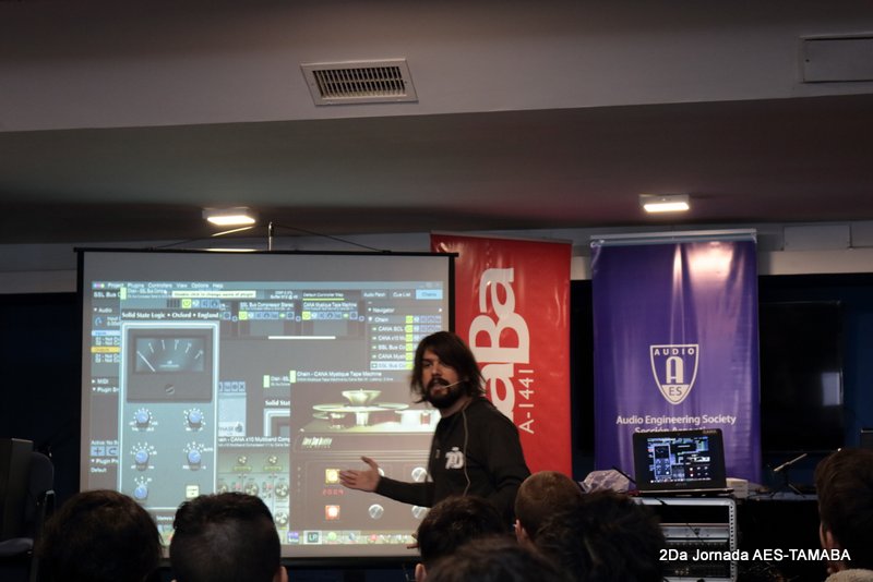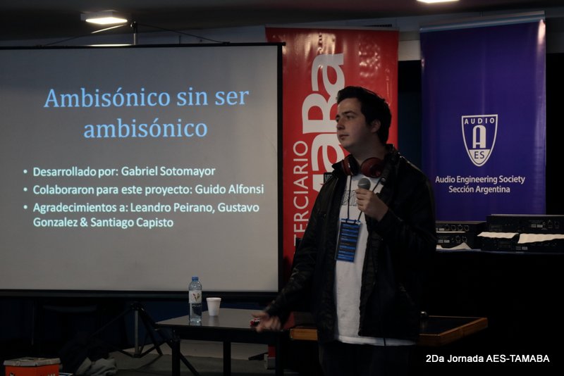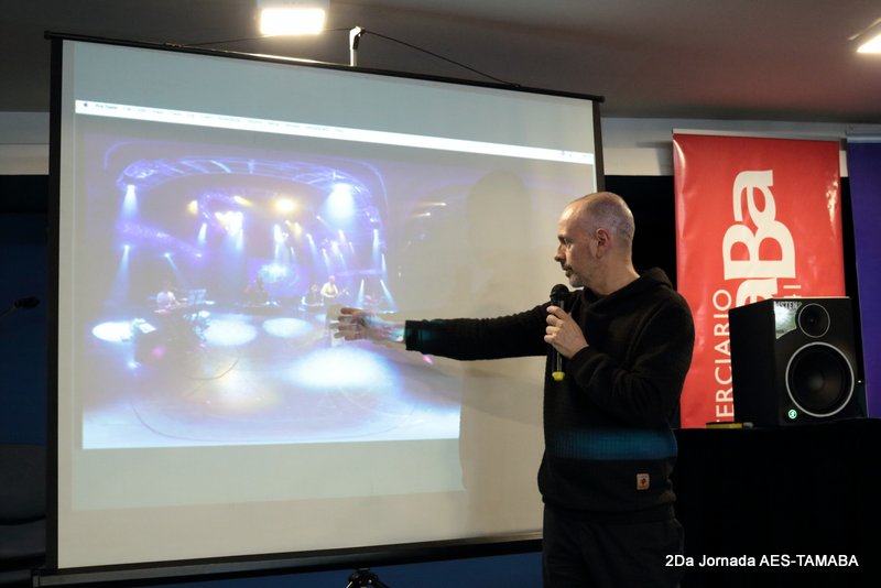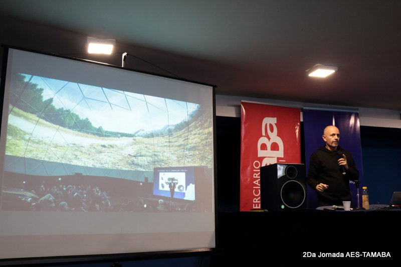 En el tramo final de la 2da Jornada AES-TAMABA, el Ing. Andrés Mayo brindó la MasterClass “Producción de Sonido 360º” en el cual describió las características técnicas de las últimas herramientas de éste tipo de producción de audio. Abordando los conceptos teóricos, pero deteniéndose en cada eslabón de la cadena de producción, destacando las fases de la investigación, la puesta en marcha y el desarrollo del producto.