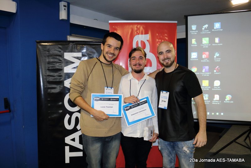 Como corolario de una jornada que resultó extensa, pero extremadamente enriquecedora, no solo desde lo académico, sino también desde lo personal, se entregaron los certificados, premios y menciones especiales a los ganadores de la 1er Competencia de Mezcla AES-TAMABA. De ésta manera Mathias Corfield (2º año TN), Manuel Clemente (1º año TM) y Daniel Amarilla (3º año TN) se alzaron con sus premios correspondientes al 1º, 2º y 3º lugar respectivamente.