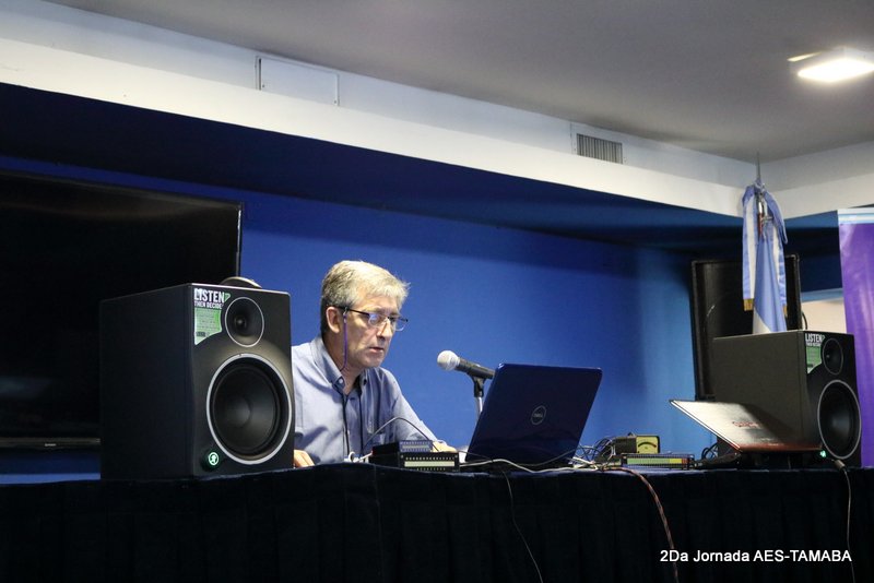 A media mañana, fue el turno del Ing. Víctor Acuña, quién invitado especialmente por la Sección, disertó sobre “Loudness y medidores de nivel”. Durante su Masterclass se abordaron los orígenes de las mediciones, conceptos teóricos y prácticos sobre valores picos, valores medios y valores eficaces, su vinculación con los medidores actuales, su relación con la sonoridad, los LUFS, el True Peak y la masterización dentro de la producción musical actual; hasta llegar a una demostración empírica, que incluyó mediciones con equipos analógicos, digitales versus mediciones “in the box”.