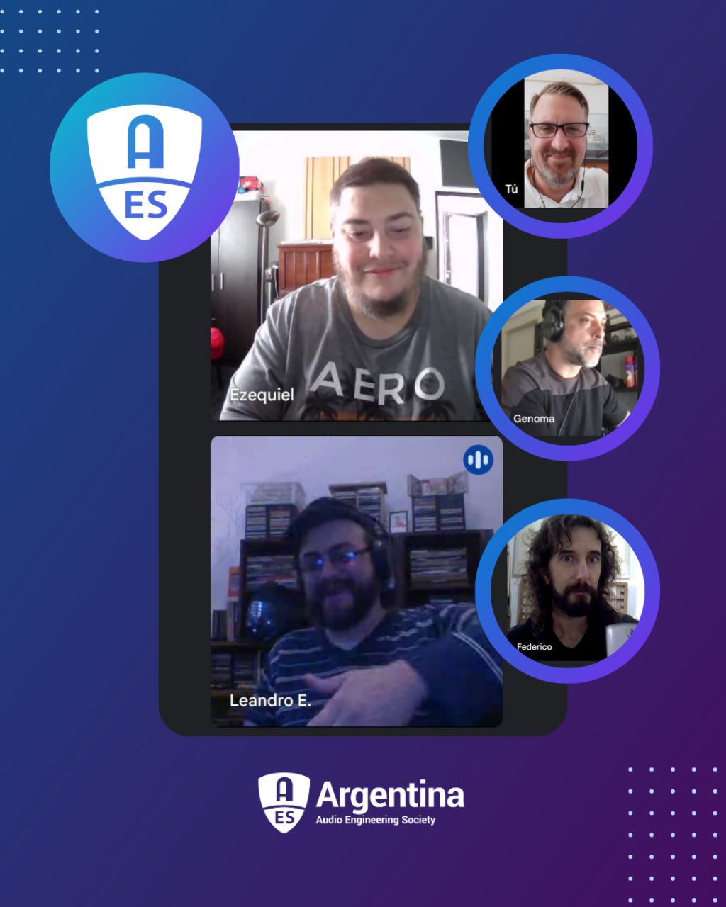 Quiero agradecer la participación desinteresada de todos los expertos oradores que, magnánimamente y con mucho gusto, pusieron su sapiencia a nuestro alcance, con humildad y altura. A la escuela de sonido ECOS, que siempre brinda generosamente un espacio para AES Argentina. Por último un reconocimiento muy especial a Natalia Sotelo y Ezequiel Nakasone, que con absoluta entrega supieron sacar adelante un evento de esta magnitud con todos los inconvenientes que surgen en el camino. A todo ellos muchas gracias.