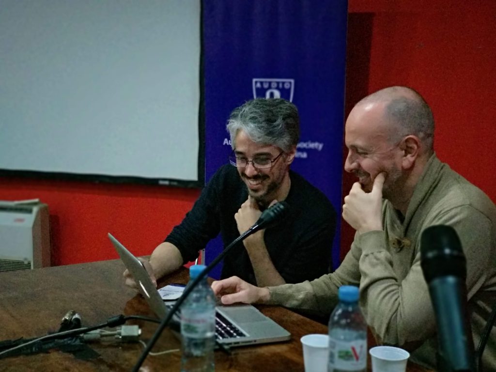 Finalizando las actividades del día Martín Muscatello junto a Andrés Mayo ofrecieron su gran experiencia en el campo del sonido inmersivo con su: Workflow de producción de audio en 360 grados en Argentina. En el mismo mostraron los detalles técnicos de trabajos realizados, en ejecución y por realizar orientado específicamente al sonido en 360 grados.