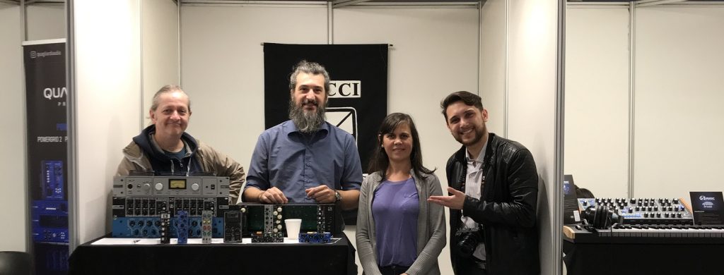Tras la charla, los miembros de AES Indio Gauvron y Christian Paladino, junto a Andrea Farina y Ariela Kantor —profesionales amigas de la comunidad— recorrieron los stands de la feria, donde mantuvieron diálogos enriquecedores con referentes como Pablo Bucci (Bucci Clásicos) y Alejandro Kohen (Quagliardi Pro Audio).