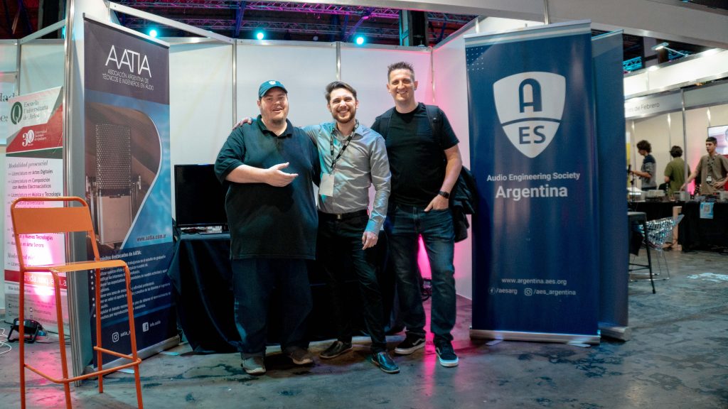 También abrimos un espacio de promoción de libros de texto de autores argentinos, gracias a una colaboración con la Asociación de Acústicos Argentinos (AdAA). Durante el evento, recibimos la visita de emprendedores del audio nacional como Ariel Heredia de «Sonido en estado puro» y Patricio Baumann de «PBM».