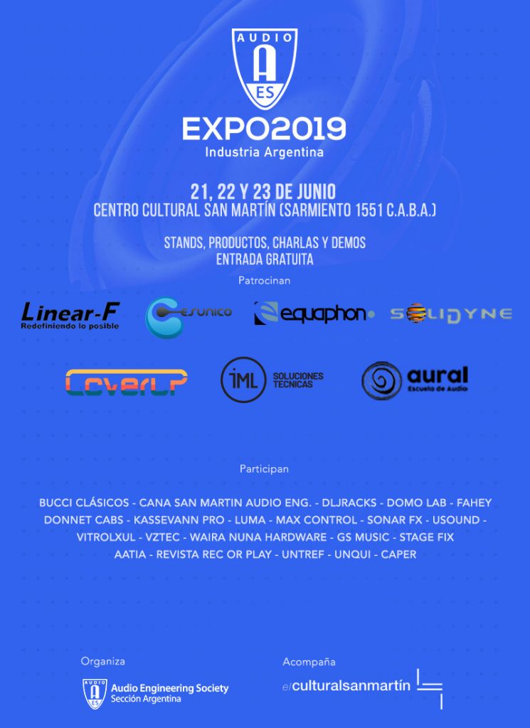 Por segundo año consecutivo vamos a estar realizando la única expo de audio de industria nacional, con expositores, productos, charlas, demos y más! El 21, 22 y 23 de Junio en el Centro Cultural San Martín de 14 a 20 hs.