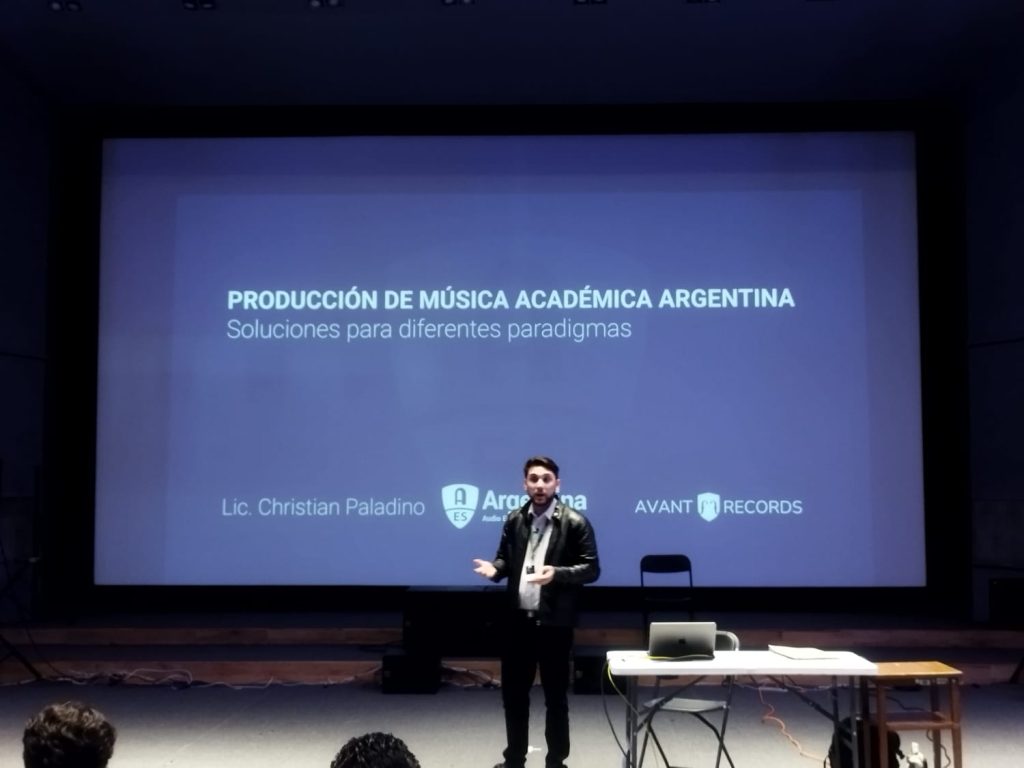 El viernes se desarrolló la primera jornada. El estudiante Fernando Castillo, de la Sección Estudiantil AES-TAMABA, fue el primer representante argentino en disertar al defender su trabajo en la final de la Categoría 1 “Grabación Acústica Tradicional” de la Competencia de Grabación Estudiantil, realizada en la Sala Atmos Theatrical.