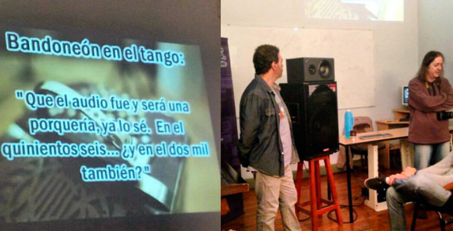 Después de dar la bienvenida y tras una breve introducción de la charla a cargo de Indio Gauvron, anterior Chairman de The Audio Engineering Society Argentina y docente del Instituto de Sonido Ecos, tuvimos la oportunidad de adentramos a lo largo de más de una hora y media en el mundo de este instrumento tan popular en Argentina. Gonzalo Manco, técnico de grabación e investigador, nos proveyó de un análisis pormenorizado de las características de su construcción y manufactura, su sonoridad, su ejecución, las características del registro y del rango dinámico del bandoneón mediante gráficos, fotos y ejemplos sonoros grabados personalmente en situación de experimentación.