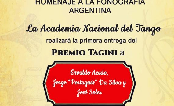 PREMIO “TAGINI” A LA TRAYECTORIA FONOGRAFICALUNES 4 DE ABRIL DE 2022 A LAS 19.30SALON DE LOS ANGELITOS – AV. DE MAYO 833 – 1º PISO Nos complace acompañar a la Academia Nacional del Tango en la entrega del Premio “Tagini” a la Trayectoria Fonográfica. Lo recibirán tres históricos y emblemáticos […]