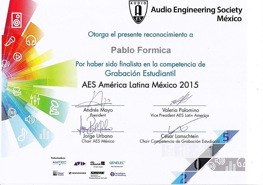 En el mes de Marzo de 2015 me enteré que se iba a realizar una Convención Latinoamericana en la ciudad de México DF, y siguiendo con el modelo de las conversiones internacionales de AES, se proponían diversas actividades dirigidas a miembros estudiantes. Una en particular era una competencia de grabación estudiantil: dividida en tres categorías según la procedencia del material musical, la misma tenía por objetivo que los participantes pudieran someter sus producciones a la evaluación constructiva de expertos, en un ambiente de camaradería y de aprendizaje colectivo.