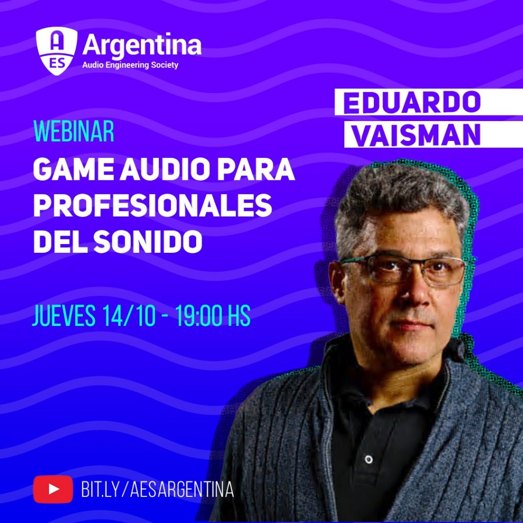 El próximo jueves 14/10 daremos lugar a nuestro décimoprime webinar, en esta oportunidad por parte de Eduardo Vaisman que nos va a estar hablando sobre el manejo y trabajo de audio en entornos profesionales para videojuegos.