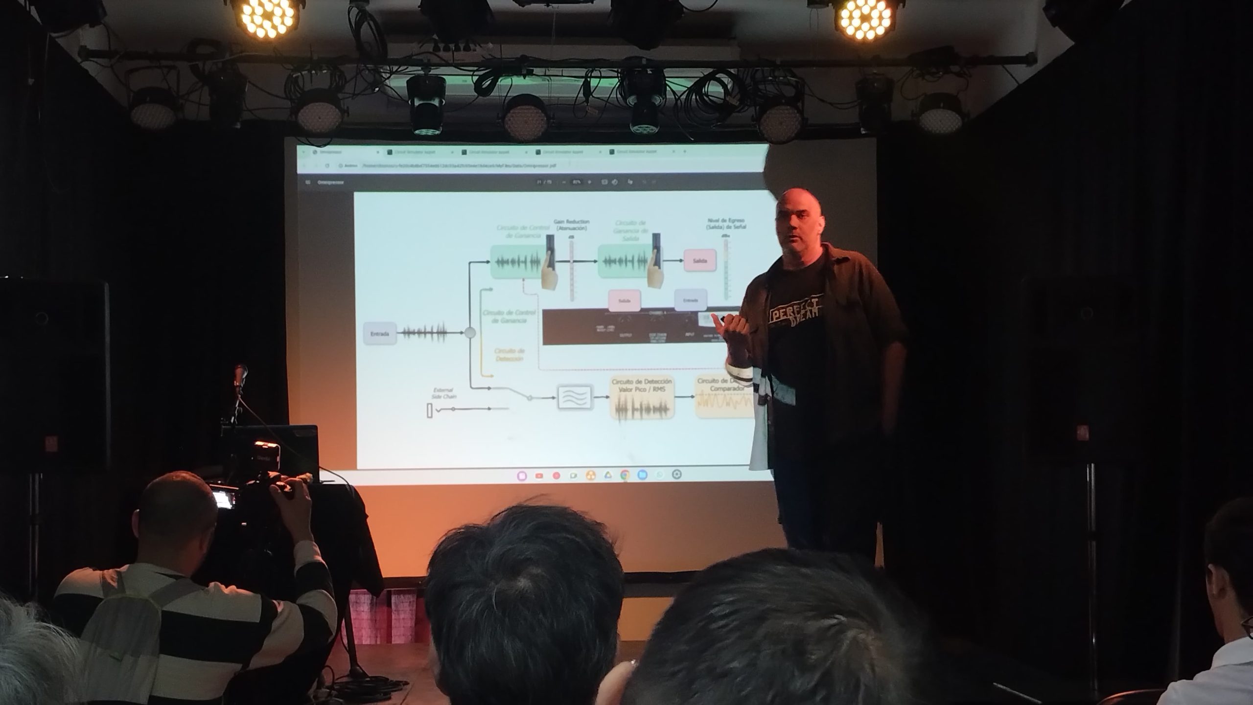 A continuación, Santiago Capisto desarrolló su charla titulada “El Omnipressor”, dedicada al legendario procesador de dinámica de Eventide. Con un tono didáctico y técnico, Capisto exploró las características de este dispositivo icónico, resaltando por qué sigue siendo un referente para ingenieros y productores de todo el mundo.