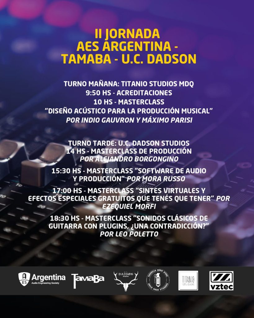 Durante la mañana nos enfocaremos en el diseño acústico y en la producción musical, realizando una visita guiada a Titanio Studios MDQ con la participación de Indio Gauvron y Maximo Parisi.