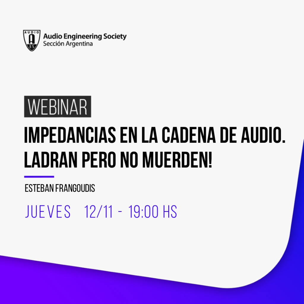 El próximo jueves 12/11 daremos lugar a nuestro trigésimo webinar, en esta oportunidad por parte de Esteban Frangoudis, músico, técnico de grabación, docente y amigo de AES Argentina. En esta ocasión hablará sobre: