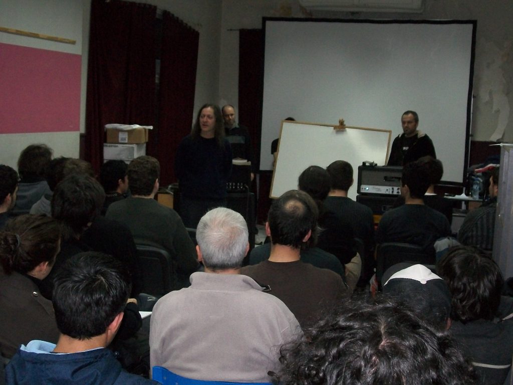 Contando con la presencia de un guitarrista invitado ad hoc, y no sin antes haberse referido a los diferentes flujos de señal y tipos de válvulas, parlantes y circuitería presentes en los equipos de Vintage Electric acarreados para la ocasión, se procedió a la demostración de cada de uno de ellos, con un espíritu de ‘comercializar’ los amplificadores tan remoto como la posibilidad de acceder a Estudio Urbano en Parque Chacabuco en subte el día de la fecha.