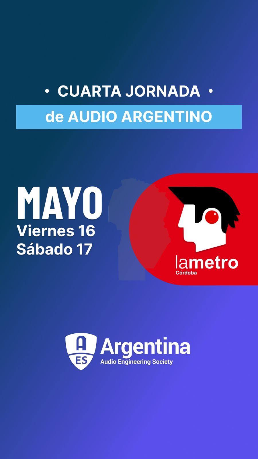 Entre el 16 y el 17 de mayo se realizarán las IV JORNADAS DE AUDIO ARGENTINO en la sede de LA METRO en el corazón de la Ciudad de Córdoba.