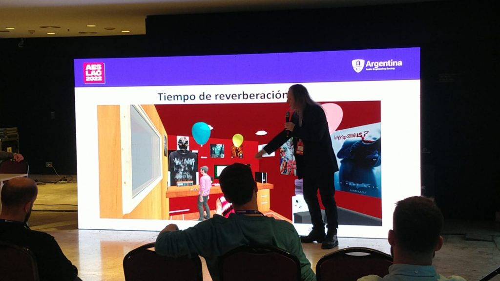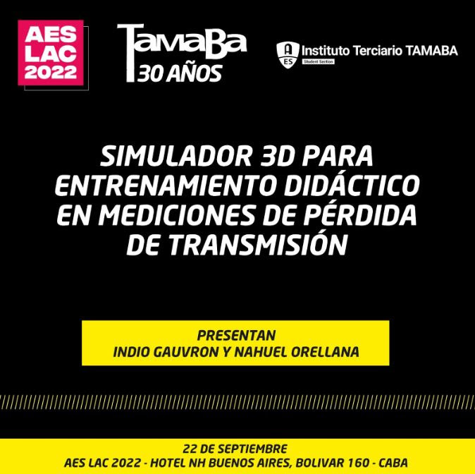 En la tercera jornada de la Conferencia Latinoamericana de Audio AES LAC Buenos Aires 2022 el profesor Indio Gauvron junto a la Sección Estudiantil AES-TAMABA, representada por el estudiante Nahuel Orellana, realizaron la presentación de este proyecto de investigación y desarrollo en el cual estuvieron trabajando durante todo este año.