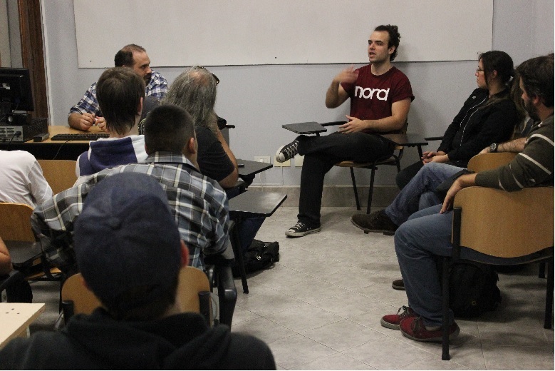 El profesor Santiago Capisto presentó su proyecto sobre el análisis técnico del sonido del bandoneón en el tango, dada su vasta experiencia en la materia. El alumno Guido Andrés explicó su proyecto sobre una instalación de sonido cuadrafónica e interactiva actualmente en realización como trabajo práctico de la materia Proyecto Profesional Multimedia, proponiéndola a su vez como materia de investigación abierta para quienes quisieren colaborar. Indio Gauvron contó sobre su experiencia en jornadas organizadas por AES en Argentina y el mundo para motivar a que los alumnos sean los próximos disertantes en este tipo de eventos.