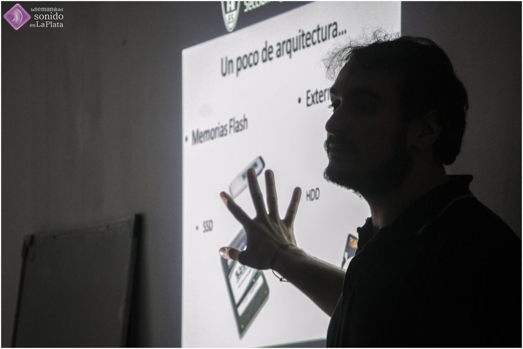 Repasaron conceptos de audio digital, psicoacústica (enmascaramiento), funciones del oído, algoritmos de compresión con y sin pérdida, revisiones históricas de las primeras placas de sonido, codecs, formatos y soportes que quedaron en desuso y los más utilizados en la actualidad en diferentes rubros: cine, tv y música.
