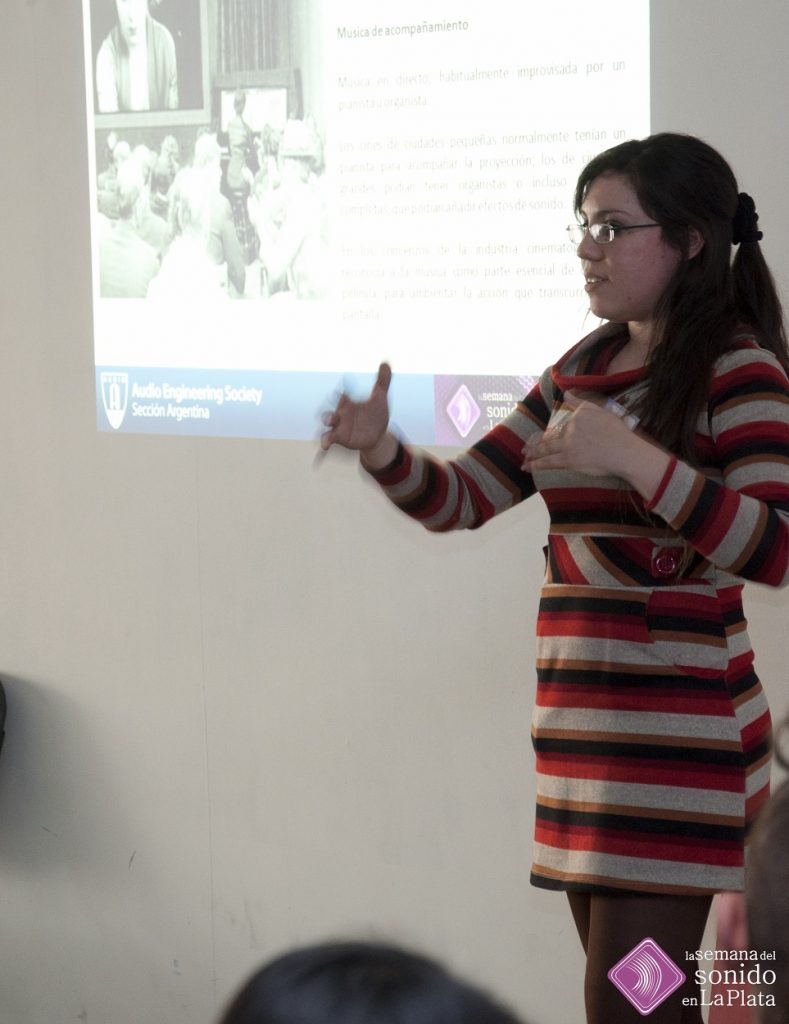 Propuso a la audiencia escuchar objetivamente los indicios del lenguaje sonoro que reafirman las acciones de los personajes basadas en repeticiones, selección de instrumentos que acentúan ritmos en cada uno de los trabajos expuestos.