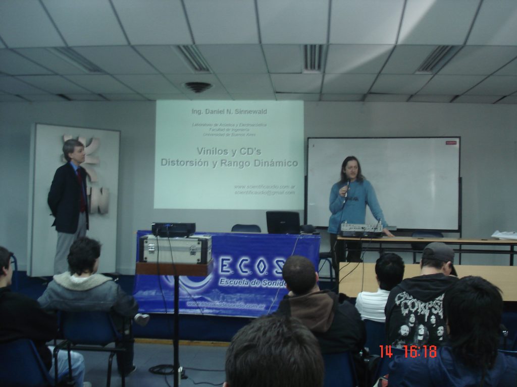 Por último, el Ing. Daniel Sinnewald dejó en claro los mitos y verdades de las grabaciones en vinilos y CD, y la destrucción de la señal en el uso de la compresión de audio en la etapa final de la grabación.
