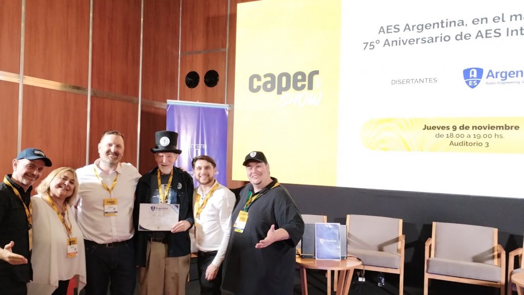 Este encuentro especial fue el resultado de la invitación y reconocimiento recibido en la Ceremonia de Clausura de AES Argentina, donde Wes fue honrado con un Diploma de Honor durante la exposición CAPER SHOW 2023. En este marco, le extendimos una invitación para participar en una charla inolvidable centrada en tecnología y micrófonos de cinta.