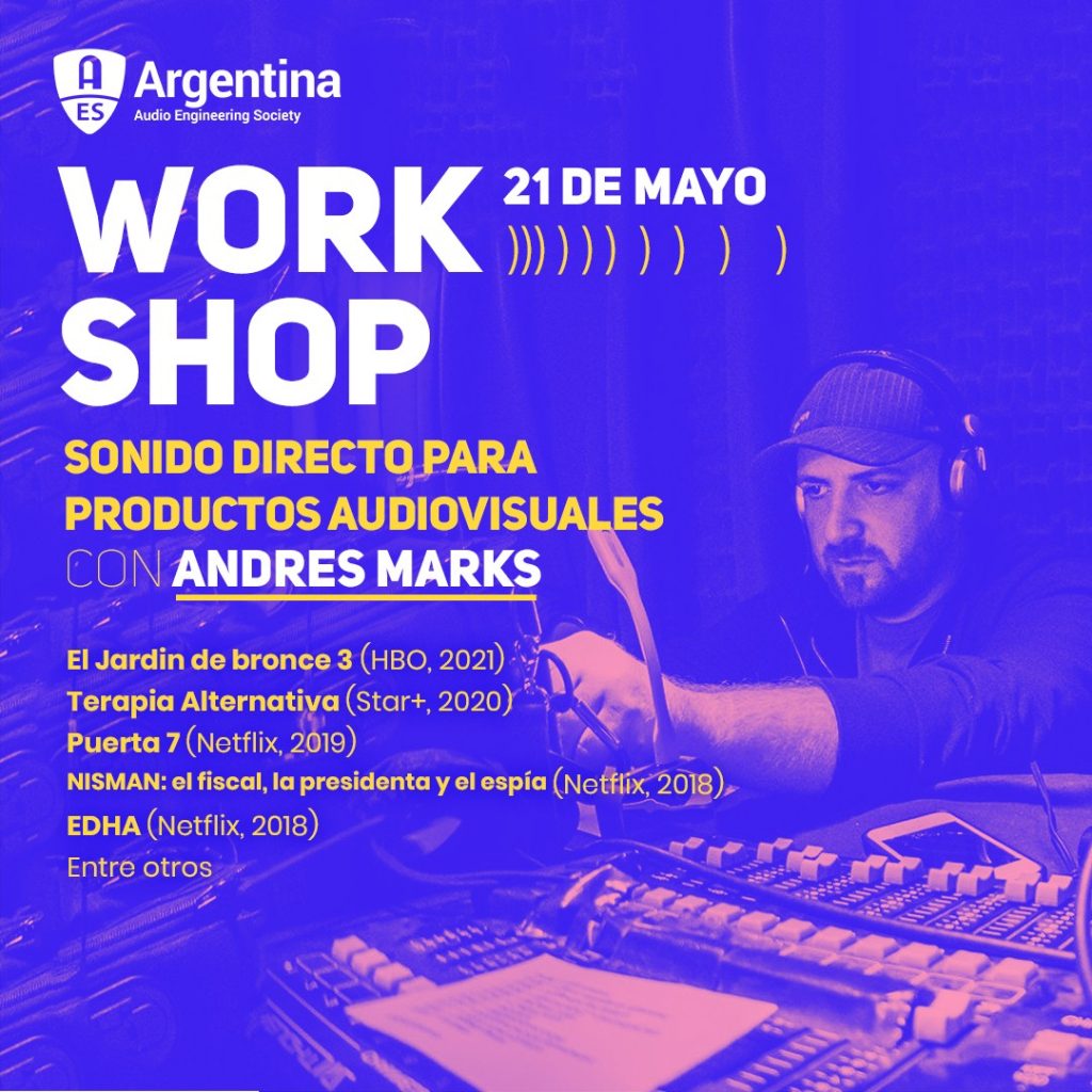 AES Argentina te invita a participar del WORKSHOP DE SONIDO DIRECTO PARA PRODUCTOS AUDIOVISUALES que brindará Andrés Marks el 21 de Mayo.
